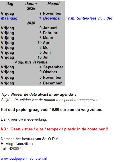 Stichting Oud Papier Aktie Linschoten - Oud papier inzameling in Linschoten